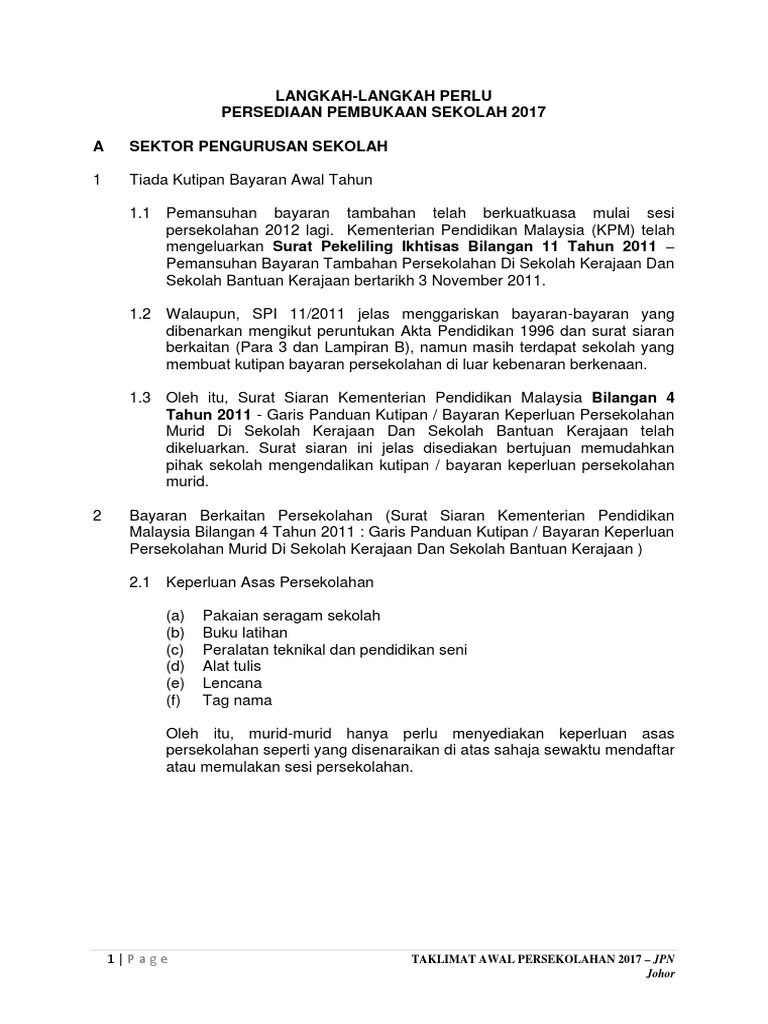 Surat Pekeliling Ikhtisas Bil 8/2016 - Use the download button below or simple online reader.. Surat pekeliling ikhtisas bilangan 8 tahun 2005 pelaksanaan bekerja lima hari seminggu bertarikh 5 disember 2005 ada diterangkan penggunaan hari sabtu oleh sekolah. Surat pekeliling ikhtisas bil.9/2009 penubuhan jawatankuasa bencana di peringkat kementerian pelajaran malaysia, jabatan pelajaran negeri. Dato'/tuan, surat pekeliling ikhtisas bil.1/1985 penubuhan jawatankuasa bimbingan pelajar sekolah. Pengurusan perolehan bekalan dan perkhidmatan yang lebih cekap dan mengikut peraturan. Garis panduan pemakaian pakaian kokurikulum di hari persekolahan <ul><li>1.